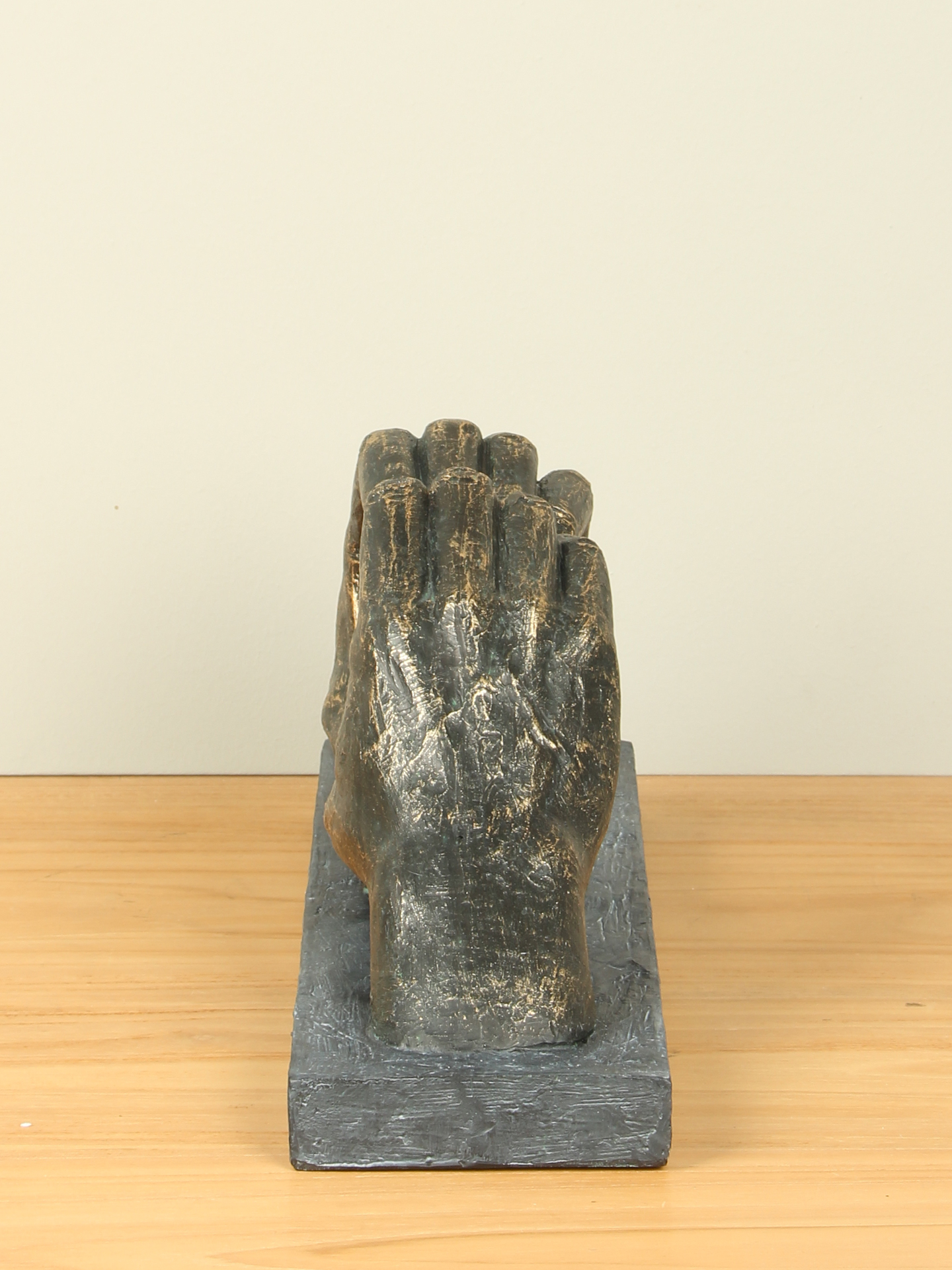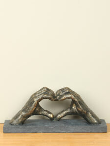 Beeld bronslook Hart uit handen, 16 cm