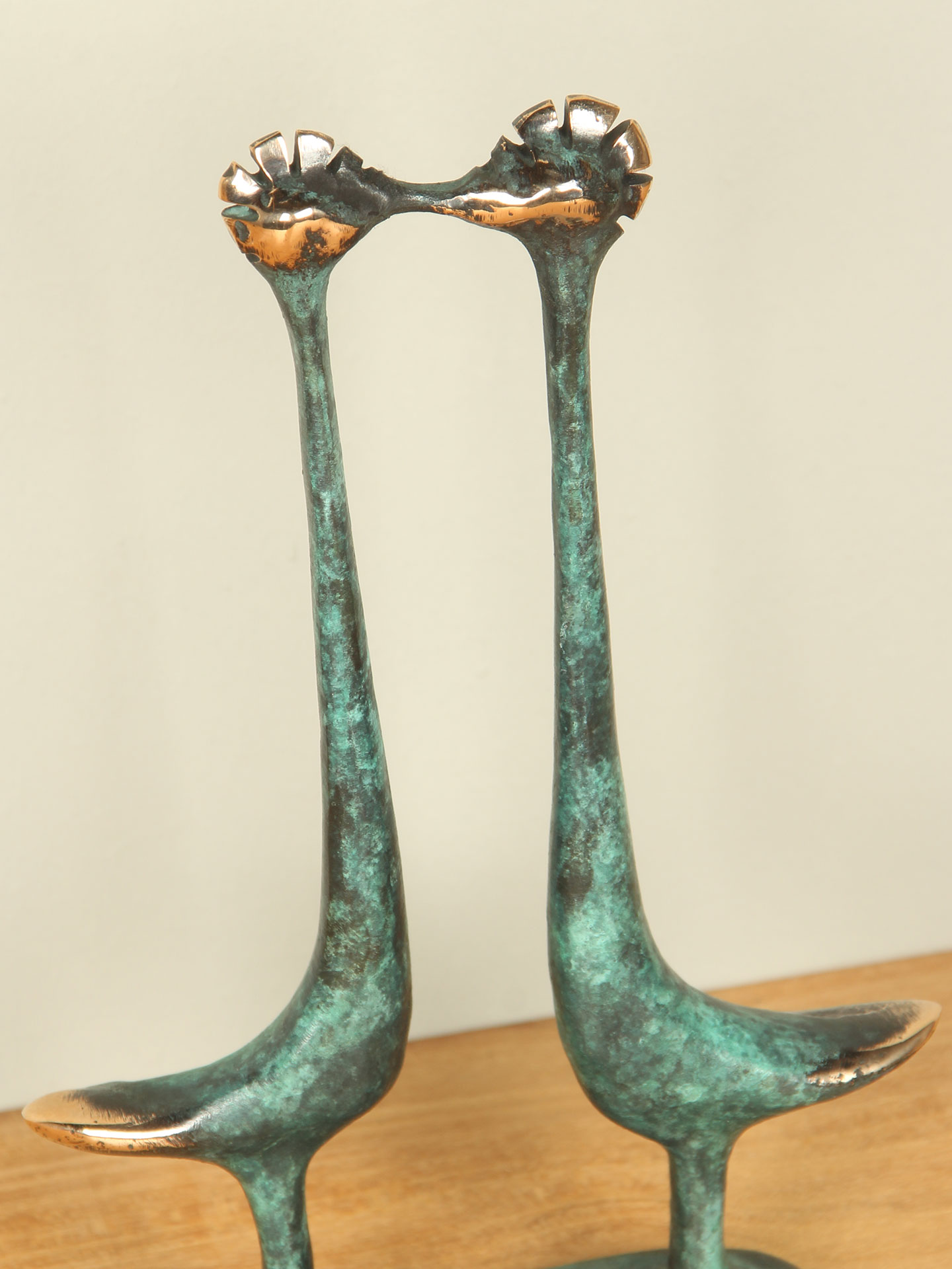Bronzen sculptuur Elkaars aandacht, 16 cm