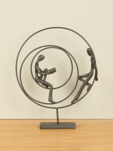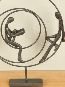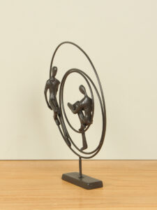 Metalen beeldje, alleen geschikt voor binnenshuis.