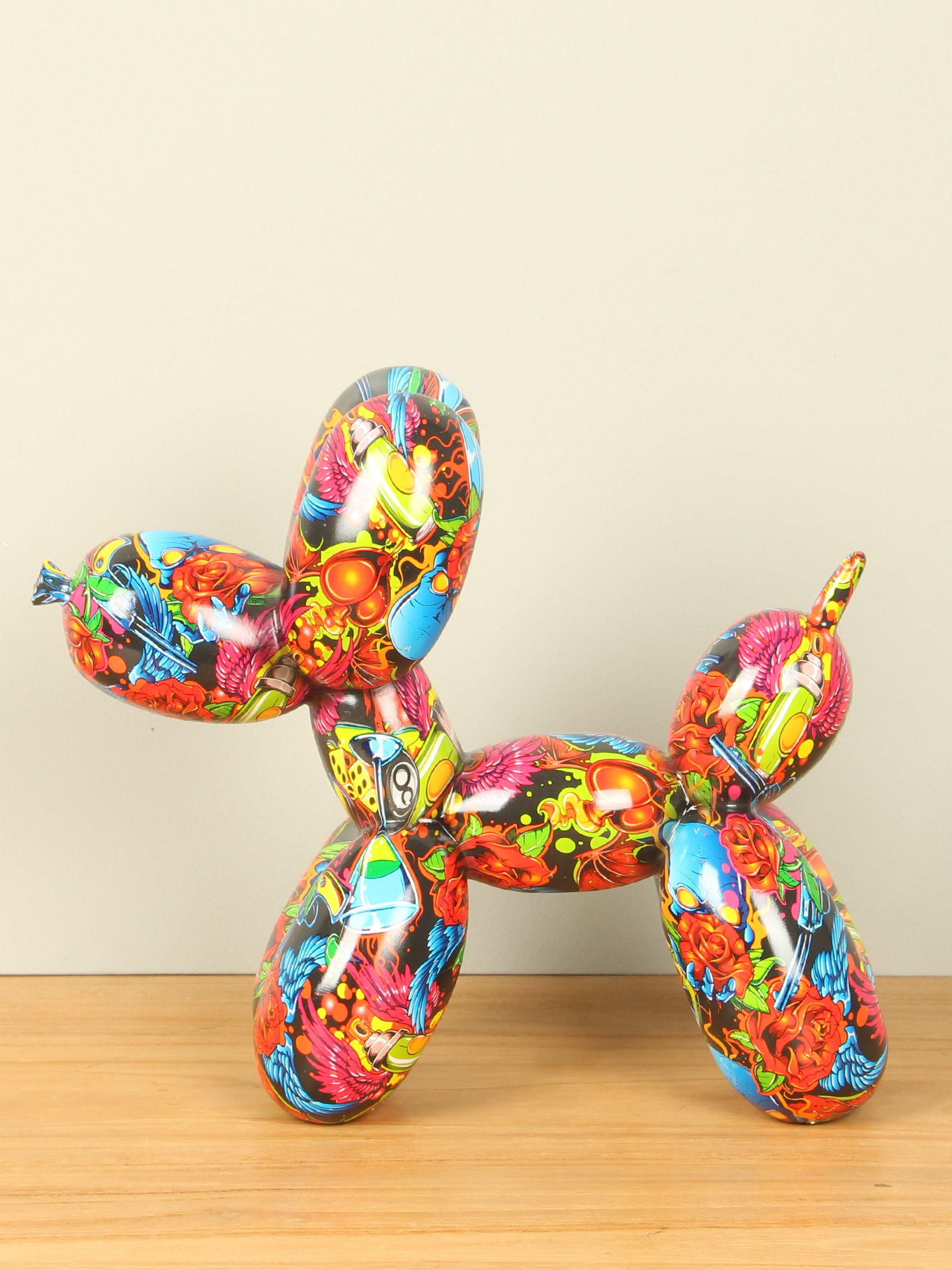 Pop-Art ballonhondje, graffiti, 25 cm
