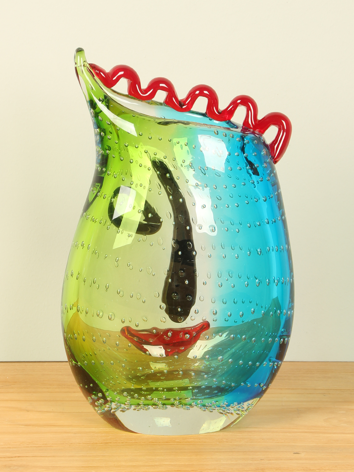 Glazen vaas Gezicht, groen/blauw, 28 cm