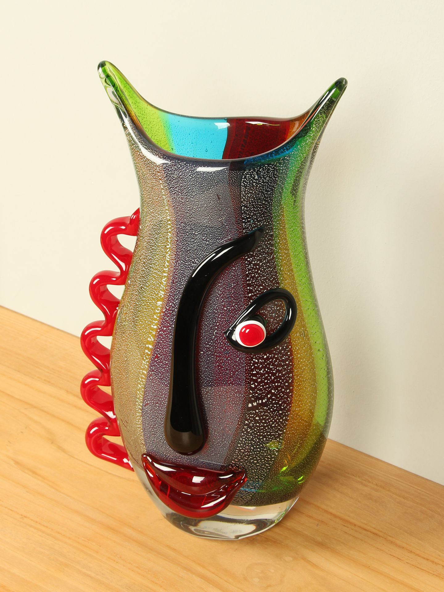 Glazen vaas Gezicht, paars/groen, 33 cm