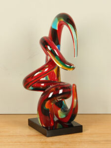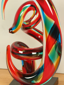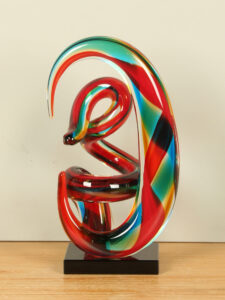Glassculptuur, kleurrijke creatie ontworpen door kunstenaars