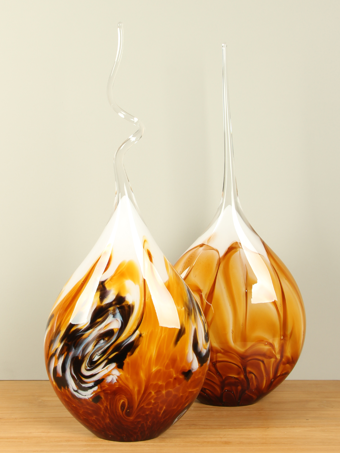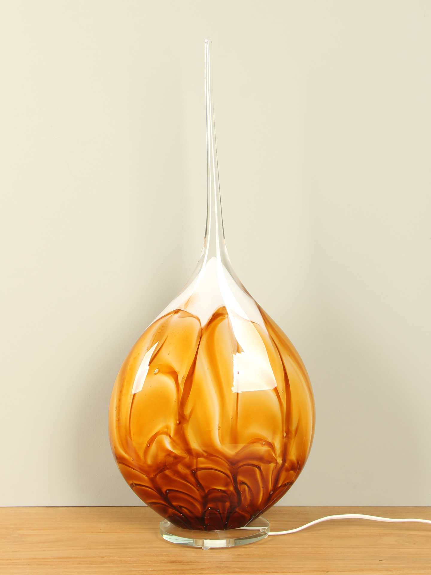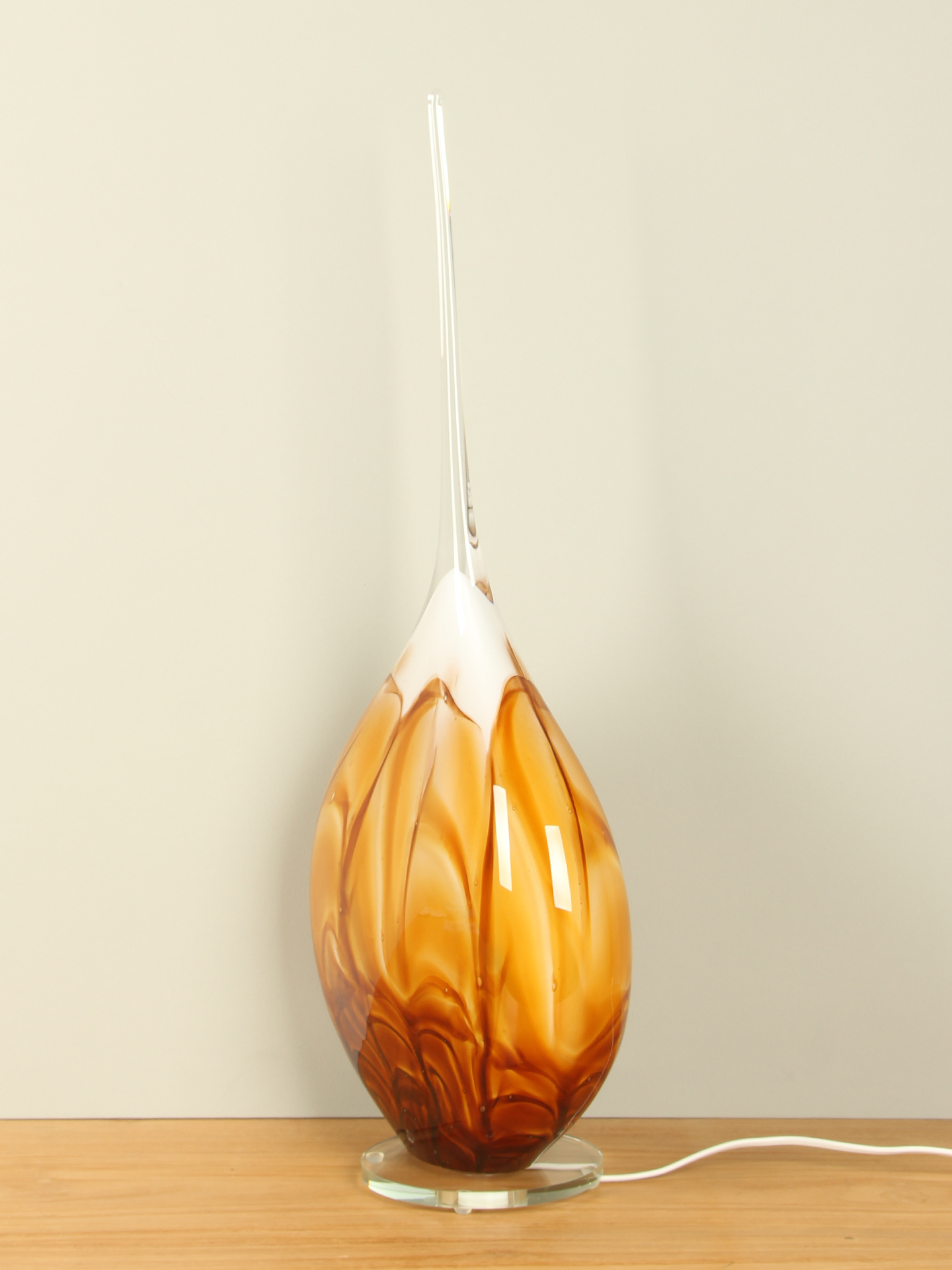 Glaskunst Schemerlamp oker met rechte punt