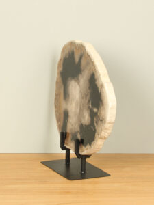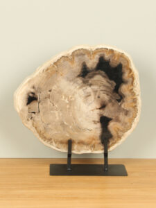 Versteend hout uit Indonesië, ontstaan en gevormd door vulkaanuitbarstingen.