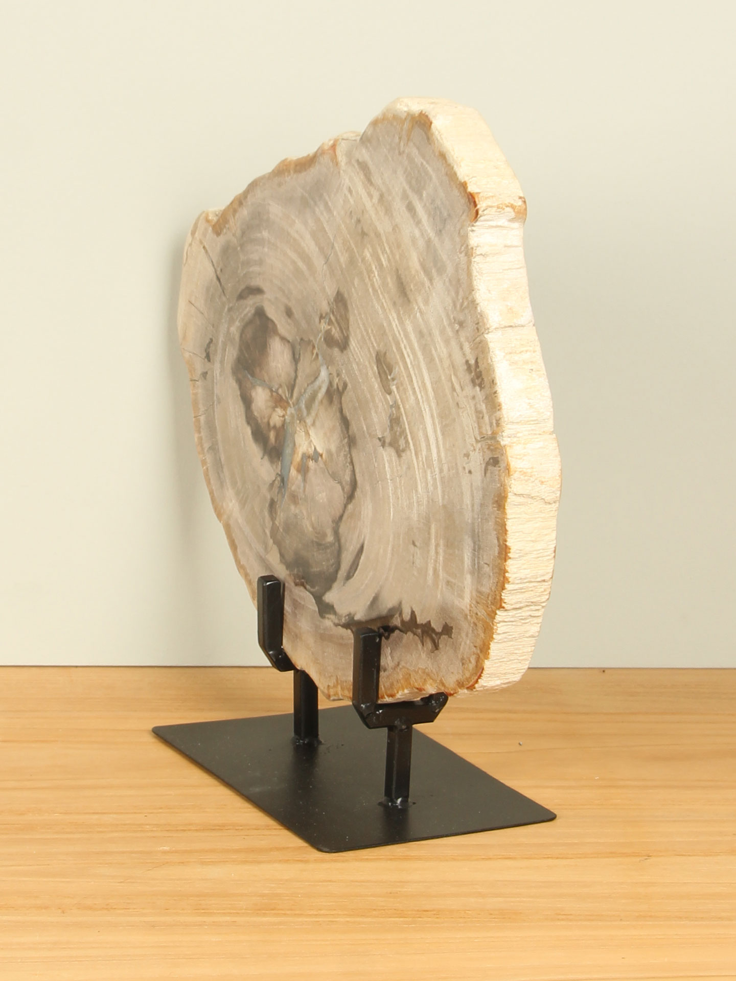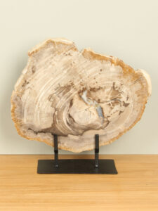 Versteend hout uit Indonesië, ontstaan en gevormd door vulkaanuitbarstingen.