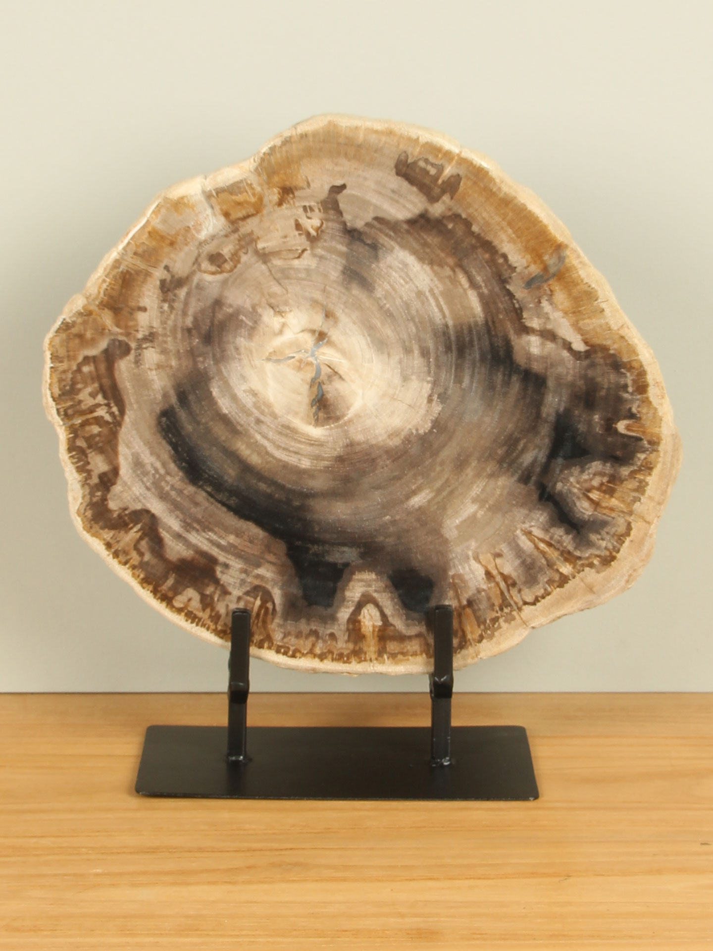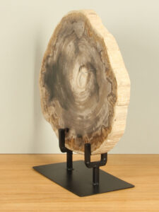 Versteend hout uit Indonesië, ontstaan en gevormd door vulkaanuitbarstingen.