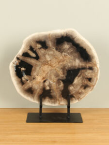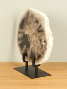 Versteend hout uit Indonesië, ontstaan en gevormd door vulkaanuitbarstingen.