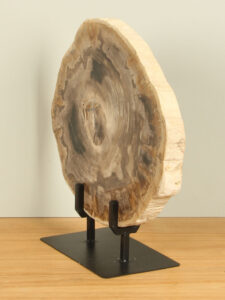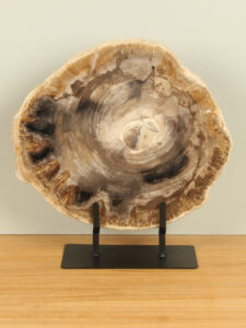 Versteend hout uit Indonesië, ontstaan en gevormd door vulkaanuitbarstingen.