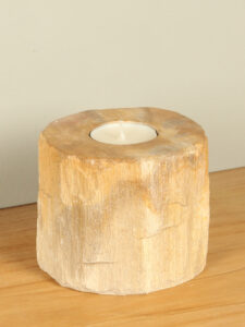 Dit unieke waxinelichtje is gemaakt van versteend hout, een prachtig natuurproduct dat miljoenen jaren geleden werd omgezet in steen.