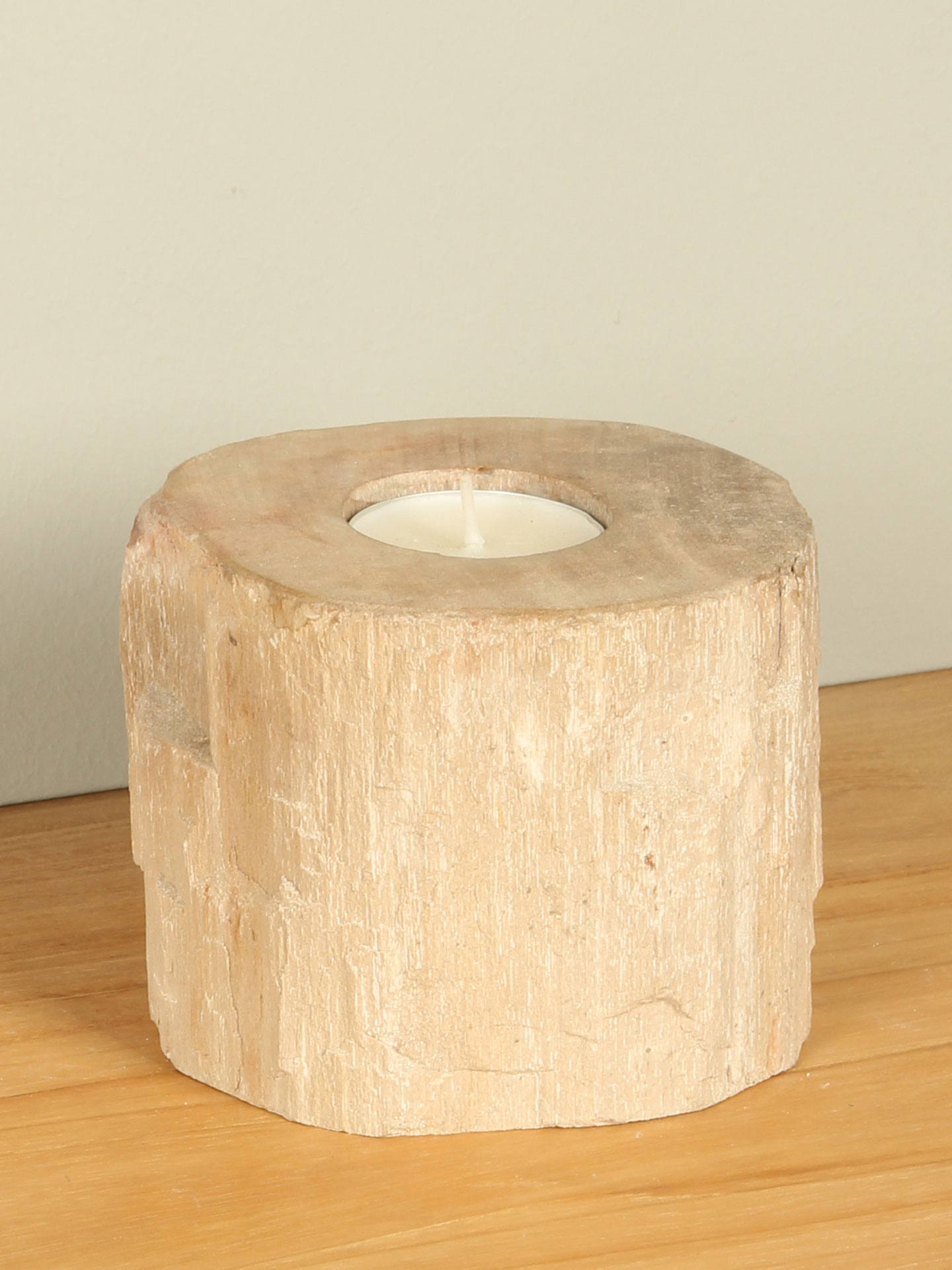 Dit unieke waxinelichtje is gemaakt van versteend hout, een prachtig natuurproduct dat miljoenen jaren geleden werd omgezet in steen.