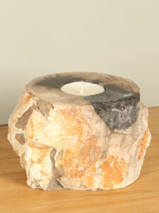 Dit unieke waxinelichtje is gemaakt van versteend hout, een prachtig natuurproduct dat miljoenen jaren geleden werd omgezet in steen.