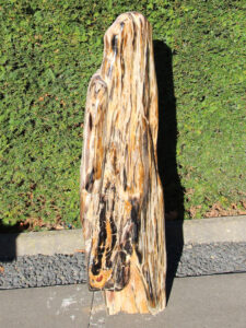 Versteend hout uit Indonesië, ontstaan en gevormd door vulkaanuitbarstingen.